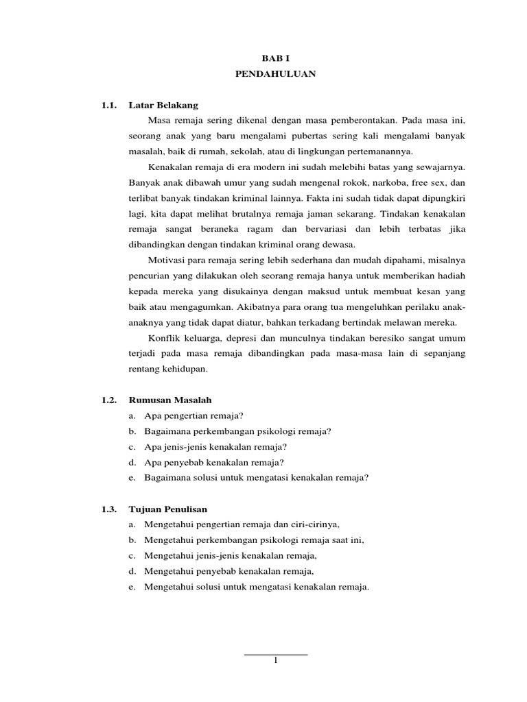 Contoh Makalah Tentang Kenakalan Remaja Pdf